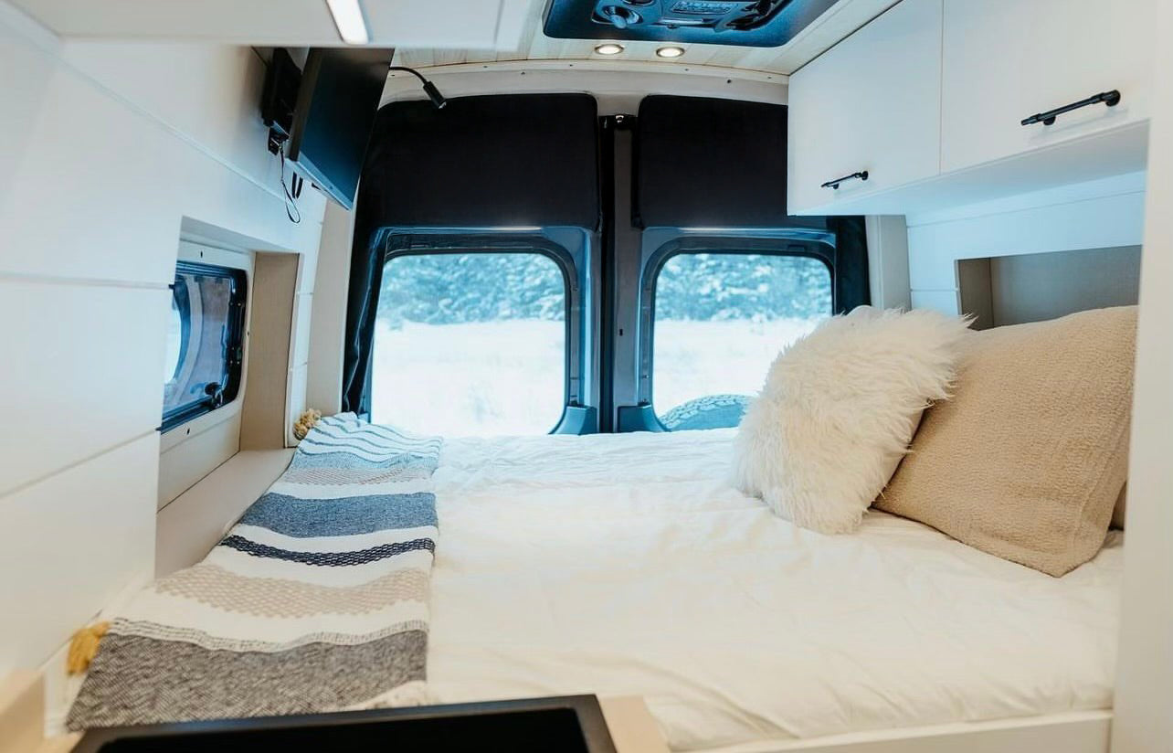 Insulated pods on the rear quarter panels increase the width of the sleeping area, optimizing interior space. With built-in insulation, they provide protection from the elements. A great night's sleep on the road awaits!