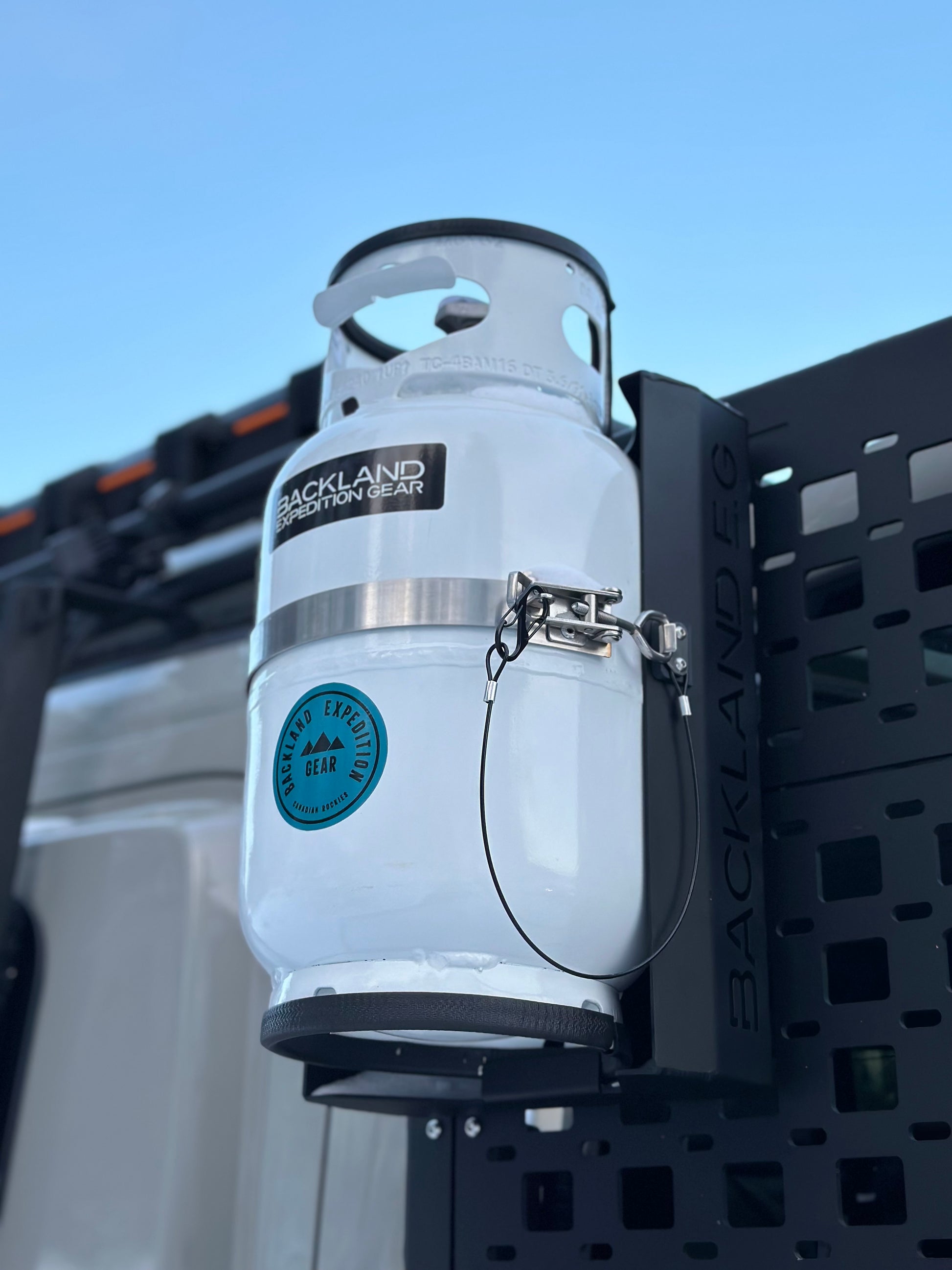 Amplify your outdoor cooking game with the OX Propane Tank Holder, a seamless addition to your Sprinter van setup. Designed to attach effortlessly to the OX Rear Carriers, this holder completes the outdoor cooking experience, especially when used in tandem with the OX Box. It ensures safe and convenient access to propane, eliminating the risk of storing toxic and dangerous propane inside your vehicle.