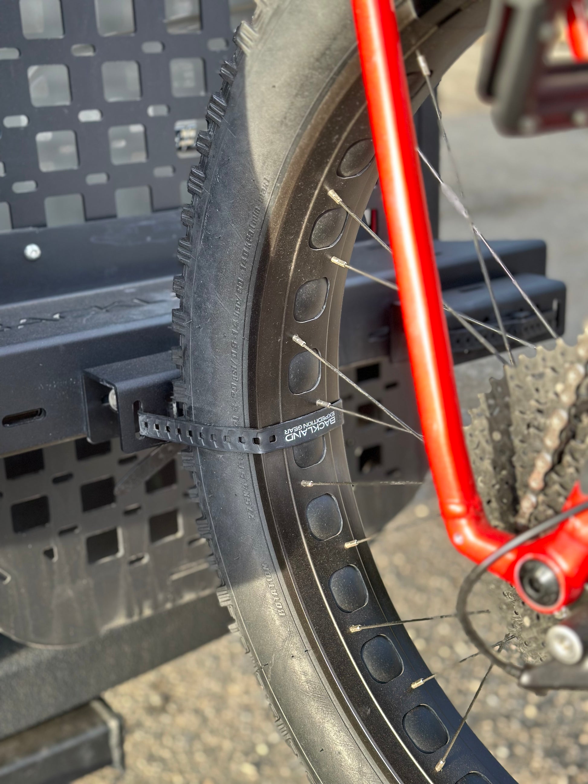 The OX Vertical Bike Rack seamlessly integrates with Backland's OX Rear Door Carrier.