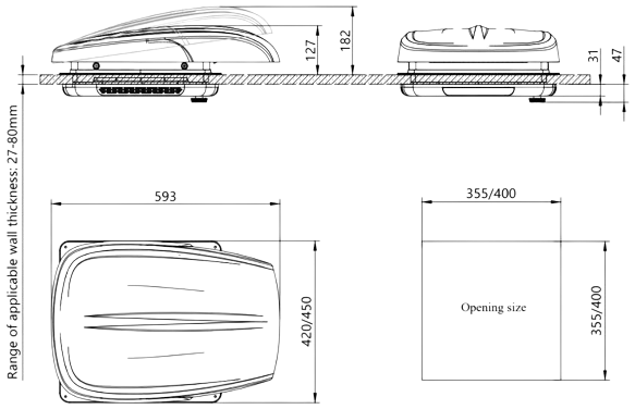 Fan: AirPlus Roof Intake + Exhaust Fan 355 x 355 Dome
