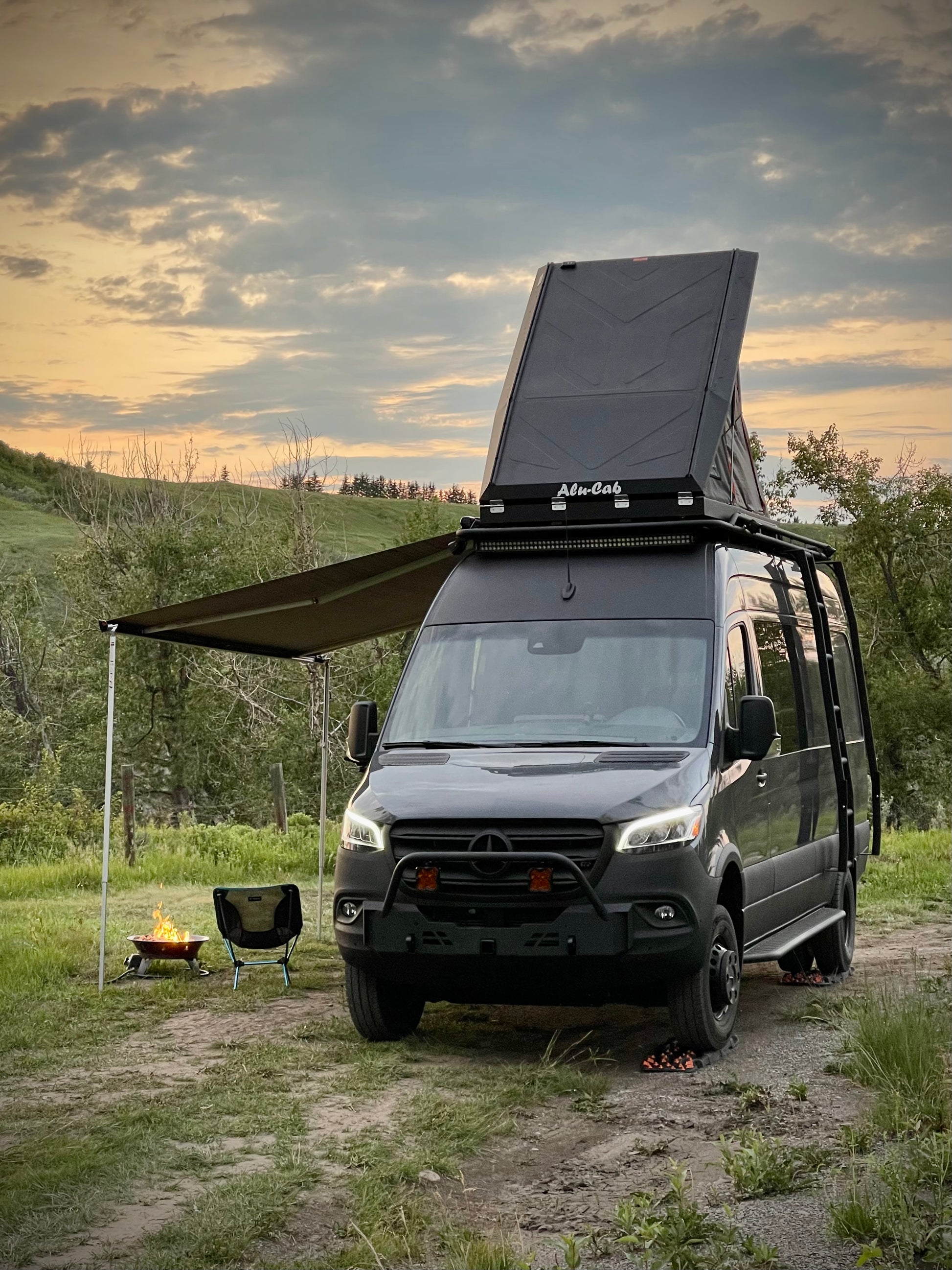 Handcrafted with precision in Alberta, Canada, the EAGLE Roof Rack is an essential upgrade for your Sprinter van. It enhances your van's utility and aesthetics significantly. Moreover, it boasts a flexible design to meet your specific travel needs. So, choose our Nest Roof Rack for a seamless, functional, and stylish addition to your Sprinter van roof rack setup.