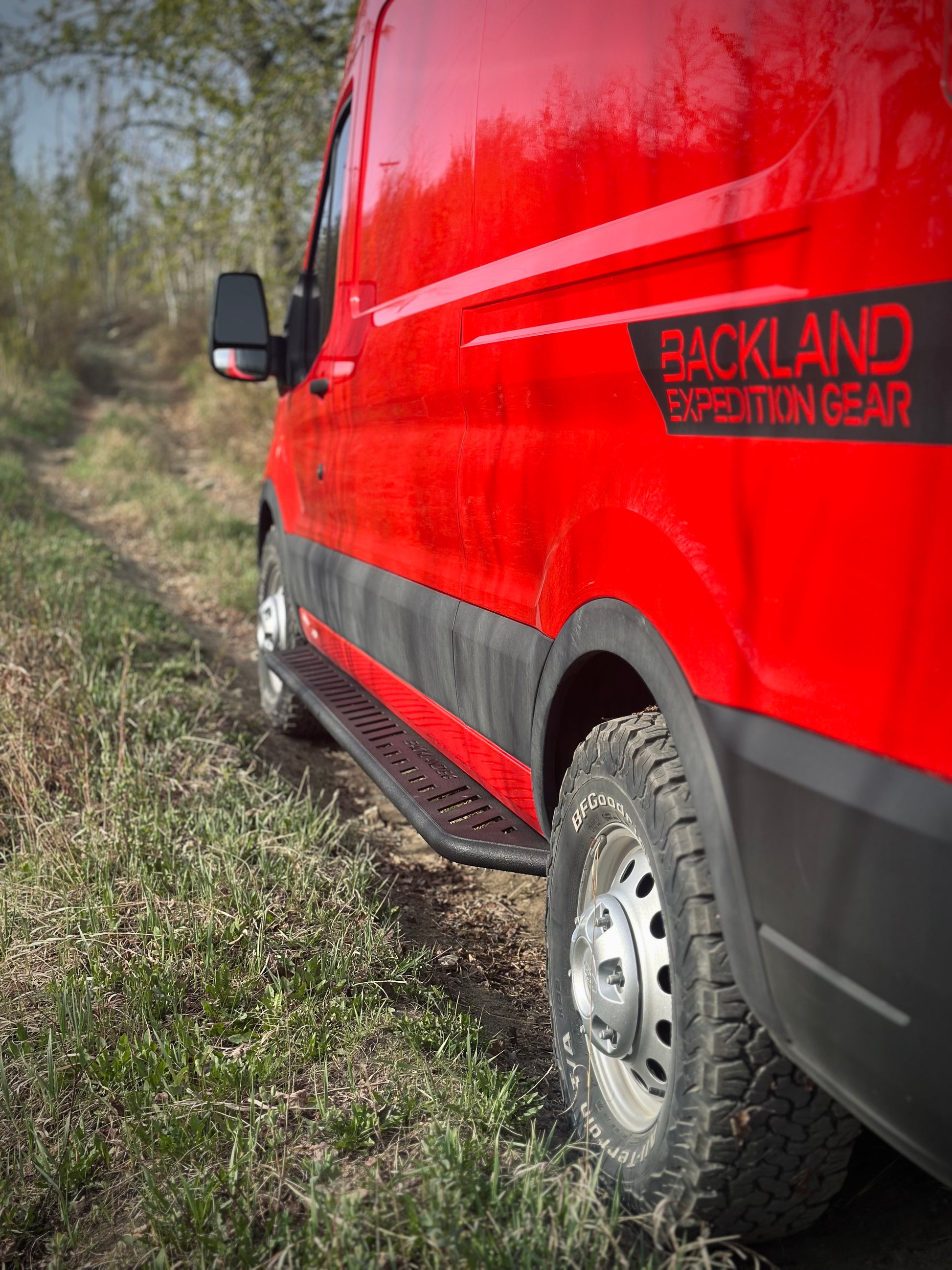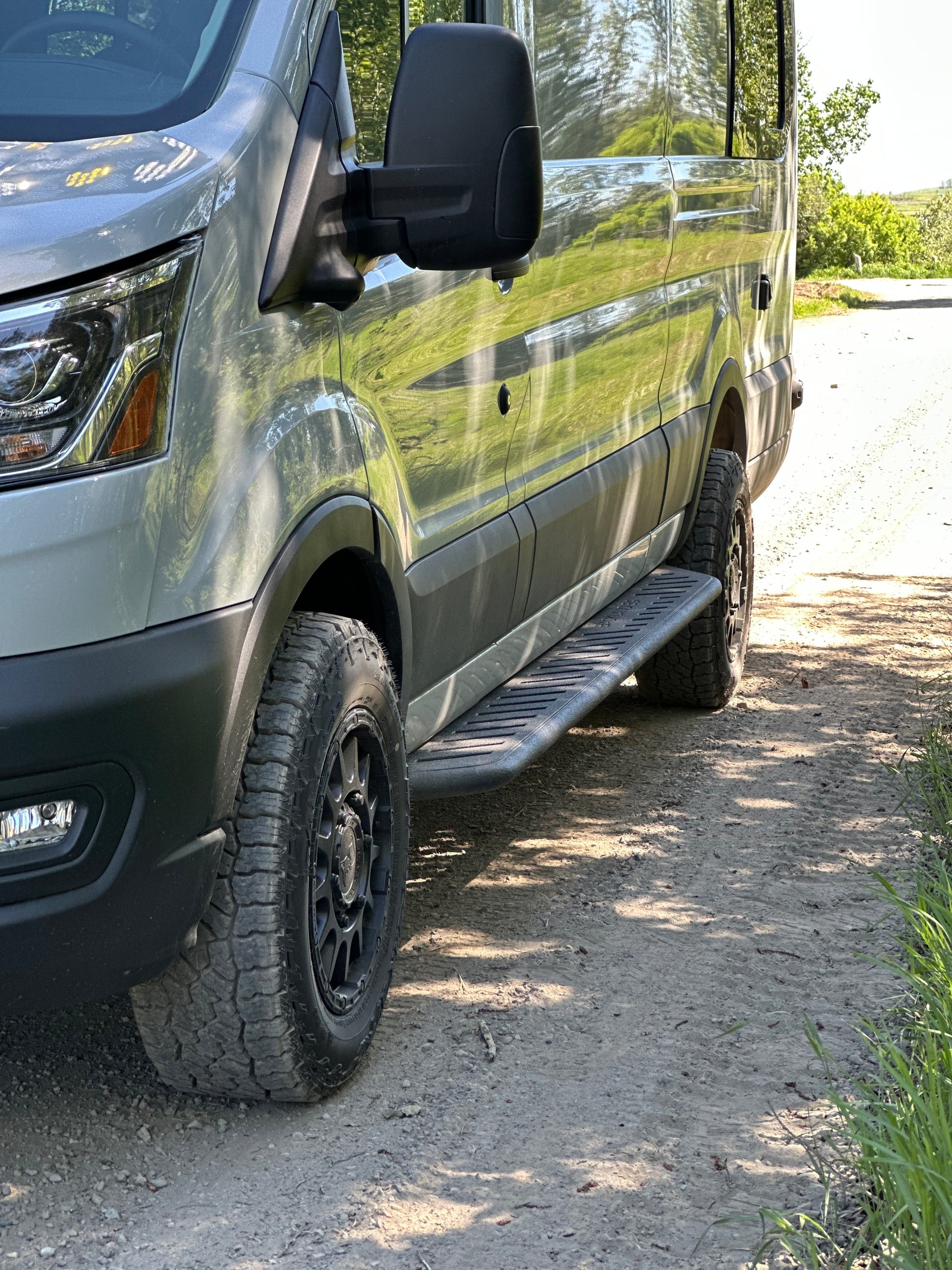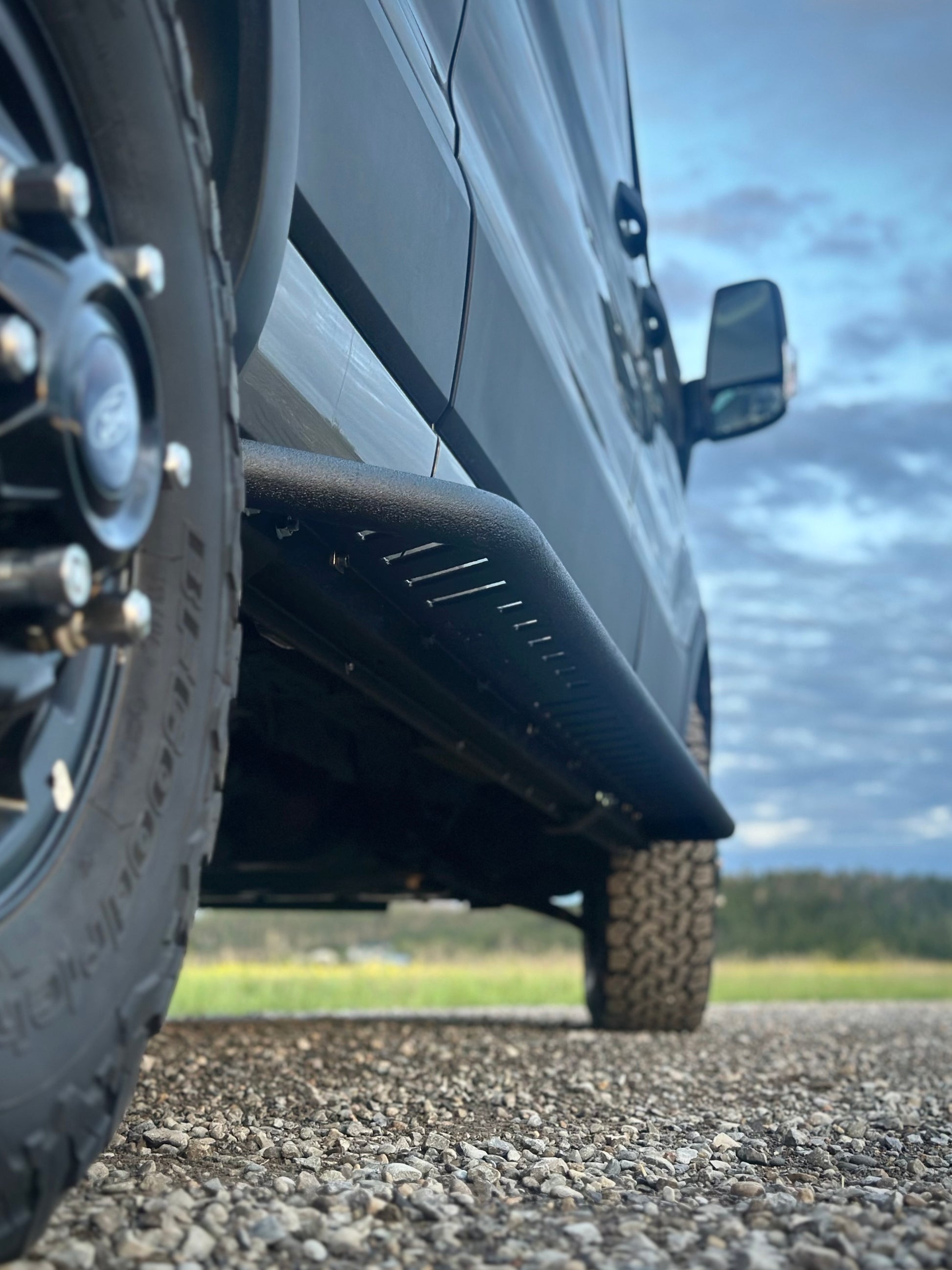 We’re proud to be the only ones designing a step system that prioritizes ground clearance — a known challenge with Transit vans. Our design also replaces the factory plastic trim beneath the rocker panels, delivering a seamless, clean look that enhances the overall profile of your van.